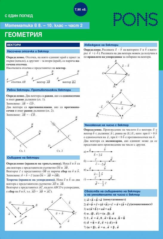 Най-важното от учебното съдържание по геометрия за 8.-10. клас – за бързо, лесно и ефективно учене, припомняне и преговор;
