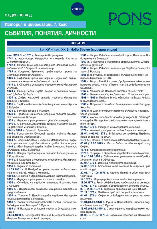 Удобният формат дава възможност за бързи справки и улеснява учениците при усвояване на исторически понятия, при проследяване на хронологични връзки и отношения между факти, процеси и личности.