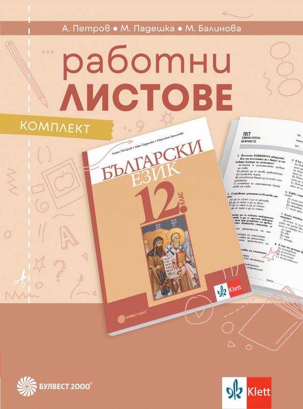 Работните листове по български език за 12. клас са предназначени да подпомогнат и улеснят учебния процес и подготовката за зрелостния изпит по български език и литература. В изданието ще намерите интересни текстове, разнообразни упражнения и тестови задачи, обединени около всяка от урочните теми, представени в учебната програма по български език за 12. клас. Това позволява помагалото да бъде използвано успешно от всички дванайсетокласници независимо от факта, че в училище работят с различни учебници. Включените упражнения, тестове и задачи дават възможност за: