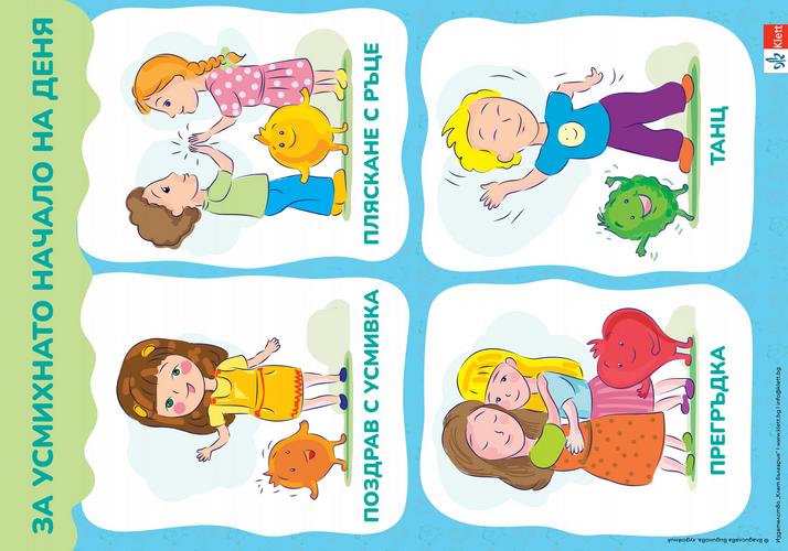 Комплектът съдържа 4 дидактични табла за активно педагогическо взаимодействие и изграждане на позитивна образователна среда в детската градина: