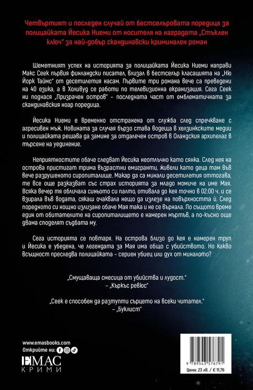 Призрачен остров е последната част от емблематичната за скандинавския ноар поредица за Йесика Ниеми.