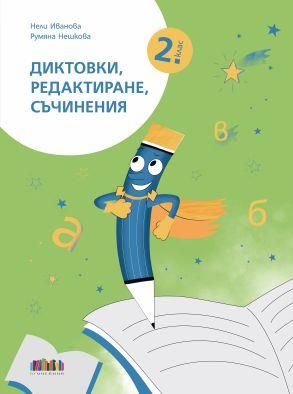 Помагалото „Диктовки, редактиране, съчинения за 2. клас“ е съoбразено с учебната програма по български език за 2. клас. Съдържа 14 теми, всяка от които е съставена от три компонента, важни за обучението по БЕЛ и за подготовката за НВО:
