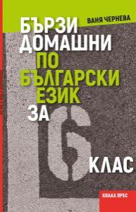 Помагалото „Бързи домашни по български език за 6. клас“ следва напълно учебната програма и отговаря на съдържанието на използваните учебници. То е практичен пътеводител, който помага на учениците да учат по-лесно, да усвояват по-бързо и да преминават уверено към новите знания. С ясни указания и подбрани задачи помагалото подкрепя както ежедневната работа в час, така и самоподготовката вкъщи.