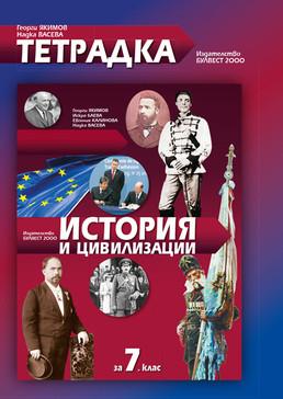Тетрадката по история и цивилизации за 7. клас е неразделна част от учебния комплект. Нейната основна функция е да осъществи прилагането от учениците на придобитите знания и умения и тяхното задълбочаване чрез решаване на задачи с различна степен на трудност. Тетрадката обединява в едно книжно тяло различните помагала, използвани в подготовката на учениците – тетрадка за работа в клас, учебна тетрадка, работни листове, контурни карти, и е единственото необходимо помагало за работа в клас и у дома.
