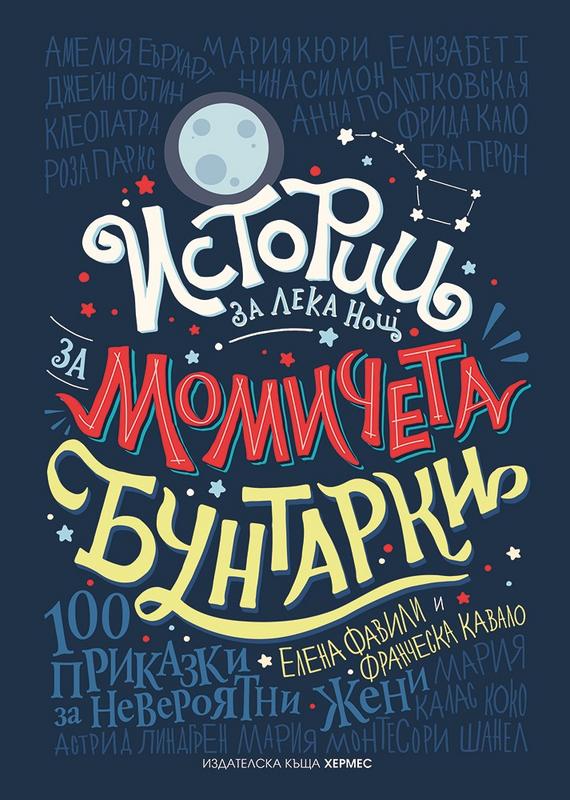 „Истории за момичета бунтарки“ събира историите на 100 изключителни момичета и жени от миналото и настоящето, които да вдъхновят читателките да се борят за мечтите си и да вярват, че могат да променят света към по-добро. Сред тях са Астрид Линдгрен, Вирджиния Улф, Джейн Остин, Евита Перон, Екатерина Велика, Елизабет I, Клеопатра, Коко Шанел, Маргарет Тачър, Мария Калас, Мария Кюри, Мария Монтесори, Мишел Обама, сестрите Бронте, сестрите Серина и Винъс Уилямс, Фрида Кало, Хилъри Клинтън, Хипатия и др. |