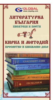 Сгъваема карта Литературна България. Представя известни български писатели и поети на картата на България. От другата страна е историческата карта Кирил и Методий – просветно и книжовно дело. Размери 70 х 100 см. Предлага се и като стенно двустранно ламинирано табло с лайсни. |