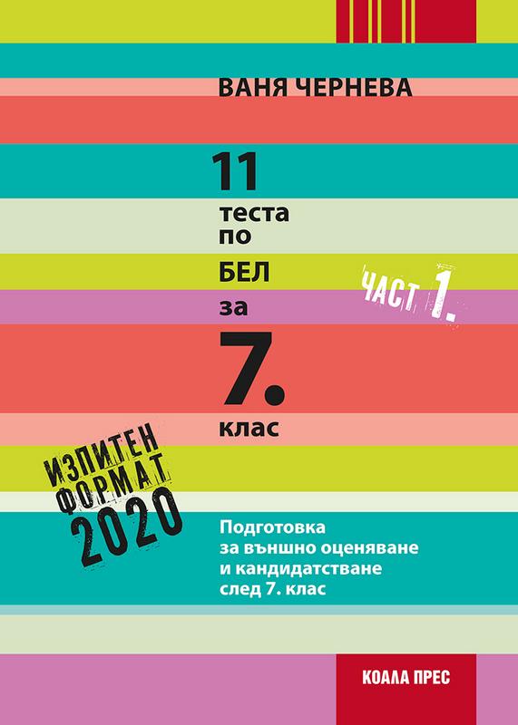 Първата част на помагалото "11 теста по български език и литература за 7. клас" съдържа седем теста, които са разработени по изпитния формат, и четири контролни теста по БЕЛ. Всичките единадесет теста следват новата учебно-изпитна програма по български език и литература, като въпросите в тях са съобразени с последователността на темите и художествените произведения, заложени в годишното тематично разпределение по двата предмета. Към тестовите задачи са добавени и въпроси върху произведения от български автори, изучени в 5. и 6. клас.