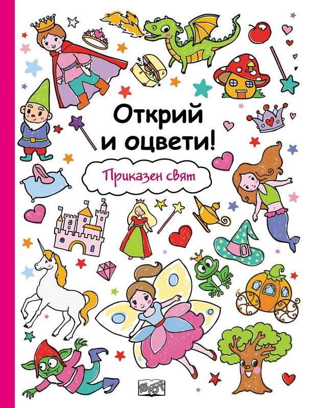 Колко са русалките с мида в косата? Оцветете ги. Виждате ли вълшебника, който е изгубил шапката си? Оцветете го. Открийте и оцветете принца, който държи меч. В тази книга ще откриете и ще оцветите фея, която живее в балон, факир, който е объркал флейта със змия, джуджета и омагьосани дървета, дракони и рицари, вампири и елфи, принцове и принцеси и още много приказни герои. |