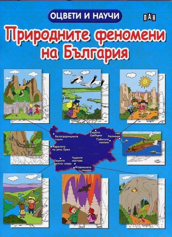 Скъпи деца, докато оцветявате картинките, ще научите най-важното за най-известните природни феномени на България. В книжката са включени рисунки на: Нос Калиакра, Белоградчишките скали, Побитите камъни, Езерото Сребърна, Чудните мостове, Ждрелото на река Ерма, Седемте рилски езера, Ягодинската пещера, Устието на р. Велека |
