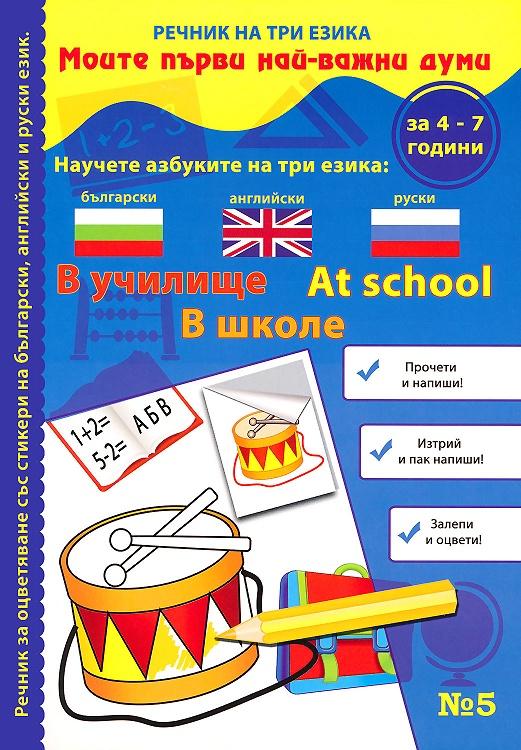 | Речник на три езика - В училище (български, английски и руски) + стикери |