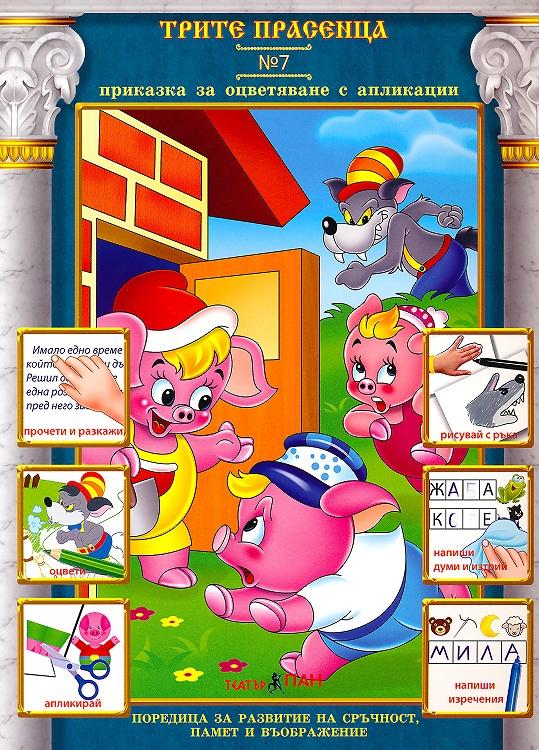 | Приказки за оцветяване с апликации № 7: Трите прасенца |