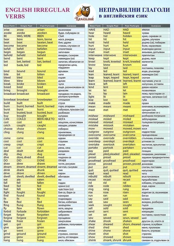 | Помагалник Неправилни глаголи в английския език |