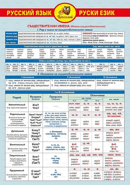 - Съществителни имена: род и число (съществителни имена само в единствено число; съществителни имена само в множествено число; някои особени случаи при образуване на множествено число); склонение (I, II, III).