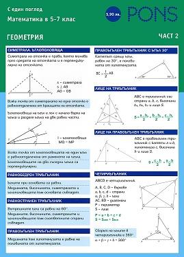 Помагалото по геометрия "Математика с един поглед" е предназначено за ученици от 5. клас, 6. клас и 7. клас. То е под формата на дипляна във формат А4 с 6 ламинирани страници. |