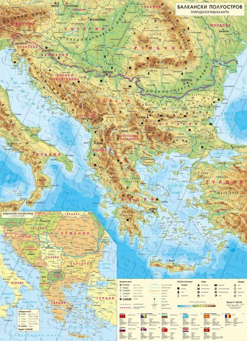 | Карта на Балканския полуостров - Природогеографска |