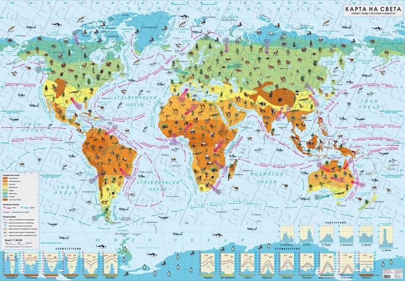 - надписи на хидрографията, ветровете, океанските течения, растенията, животните и др.;