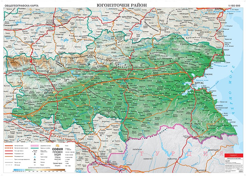 | Карта на България - Югоизточен район: Общогеографска |
