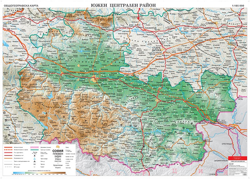 Картата е с мащаб 1 : 185 000. Размерът е 140 х 100 см. Изработена е от винил; с пластмасови лайсни. |