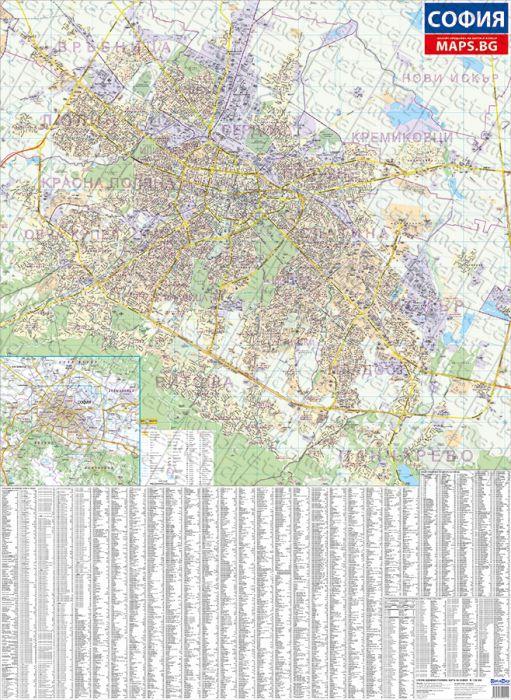 | Карта на София - стенна |