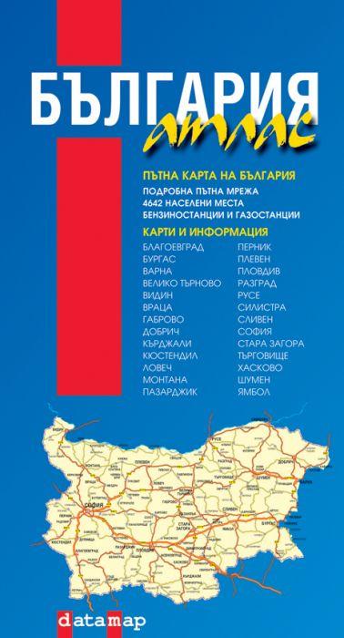 Пътна карта на България, 4642 селища, релеф, индекс на селищата, таблица на разстояния между градовете в километри.