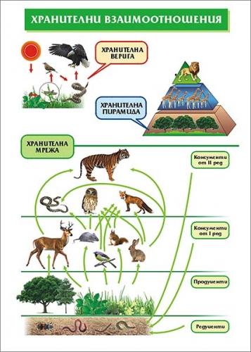 Табло Хранителни взаимоотношения, подходящо за часовете по "Човекът и природата".