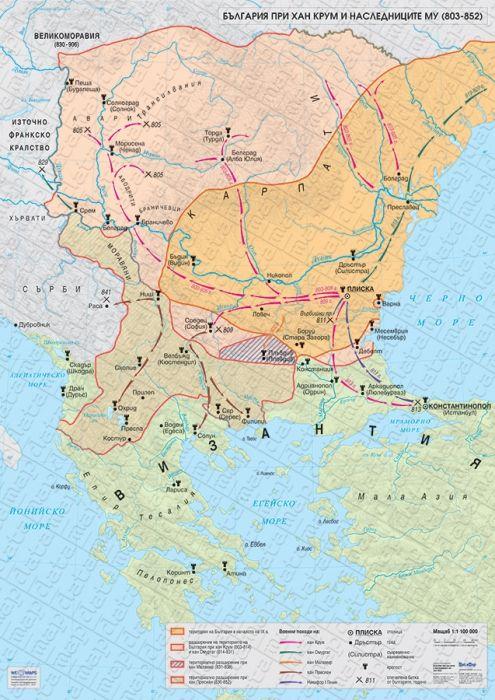 България при хан Крум и наследниците му (803 - 852 г.) - стенна карта |