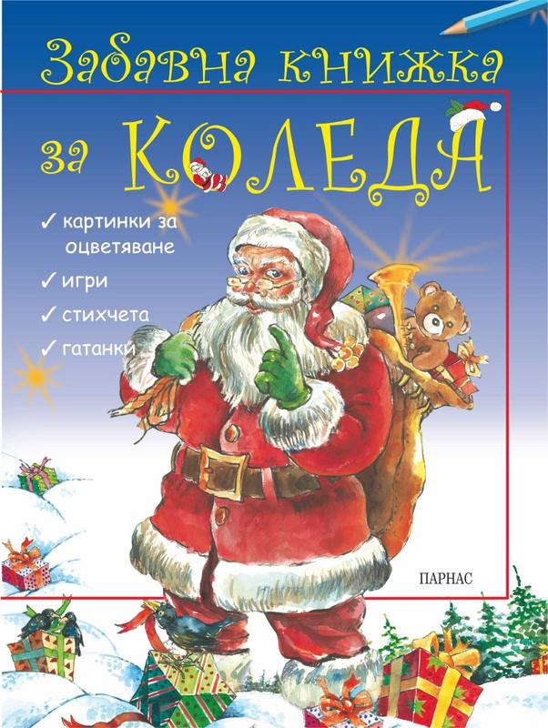 32 забавни страници за оцветяване и игри с любими коледни герои. Включени са още популярни стихчета и гатанки, посветени на Коледа и Нова година.
