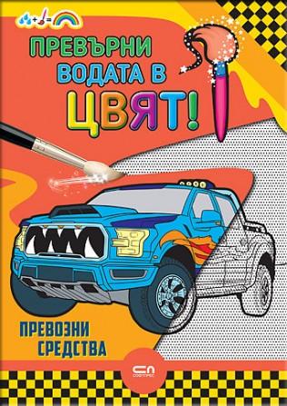 По земя или във въздуха – превозните средства са любима тема на всяко хлапе. С тази книжка дори най-малките ще могат да се упражняват в тяхното оцветяване само с помощта на четка и чаша вода.