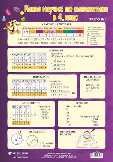 | Какво научих по математика в 4. клас – 1. част (нагледно табло) |