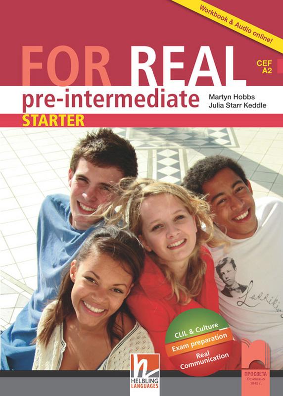 Преговорната книга Starter pre-intermediate представлява синтезиран преговор на изученото в предходното ниво на системата FOR REAL – elementary. Учебният материал в книгата е предназначен за затвърдяване на ниво А2 и плавен преход към ниво В1, преди да се премине към книгата за ученика FOR REAL pre-intermediate. Starter се предлага с безплатна работна тетрадка и аудиозаписи за работа в клас. |