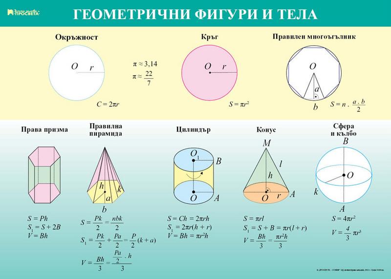 Табло по математика за 6. клас. „Геометрични фигури и тела” |