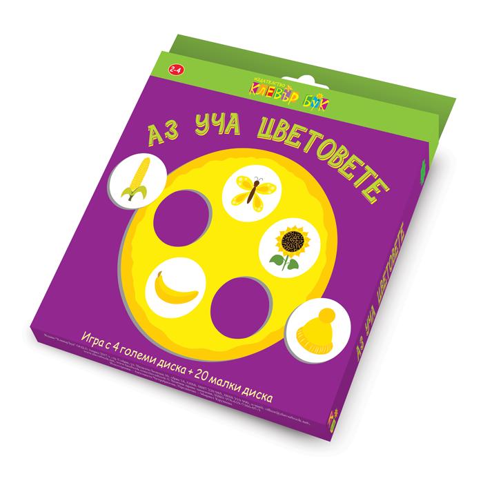 Тази образователна игра съдържа за цветовете 4 големи диска + 20 по-малки диска, с които детето ще може да се запознае с 4-те основни цвята - син, червен, зелен и жълт.