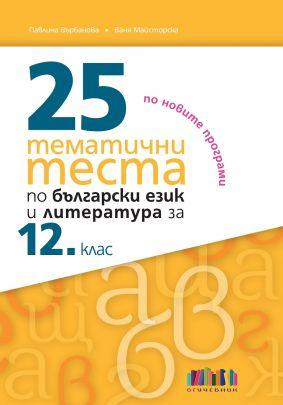 Помагалото съдържа 25 тематични теста (9 по български език и 16 по литература), които следват темите в учебните програми на МОН за 12. клас.