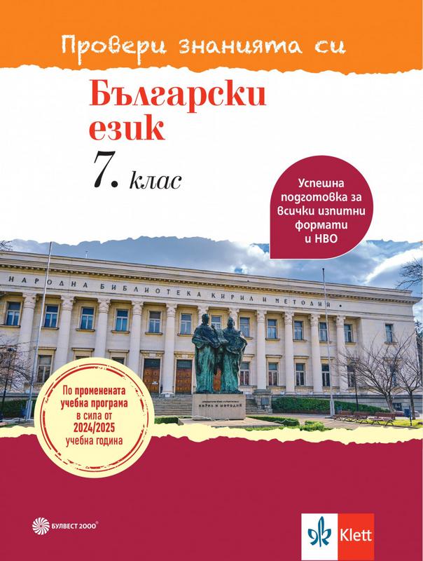 | Учебното помагало „Провери знанията си по български език в 7. клас“ е предназначено за подготовката и самоподготовката на учениците за учебните занятия, както и за НВО в края на учебната година. Предложени са 11 теста по теми от учебната програма по български език за 7. клас, които включват задачи: