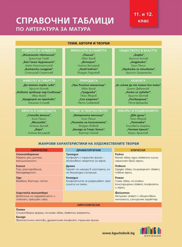 | Справочни таблици по литература за матура (по новите програми за 11. и 12. клас) |